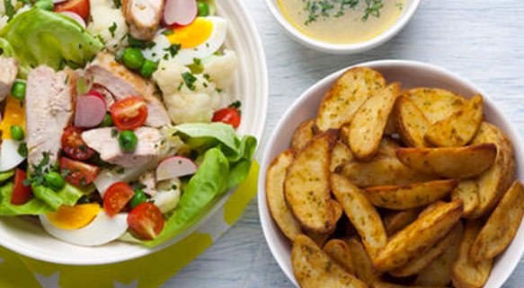 - Préparez les Country Potatoes en suivant les instructions sur l’emballage.